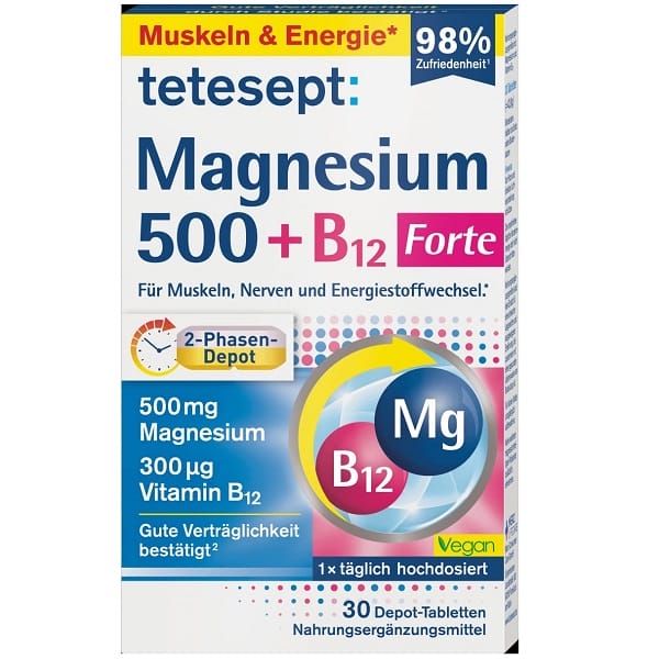 🇩🇪 Tetesept Magnesium 500 + B12 Depot – 30 Tablets